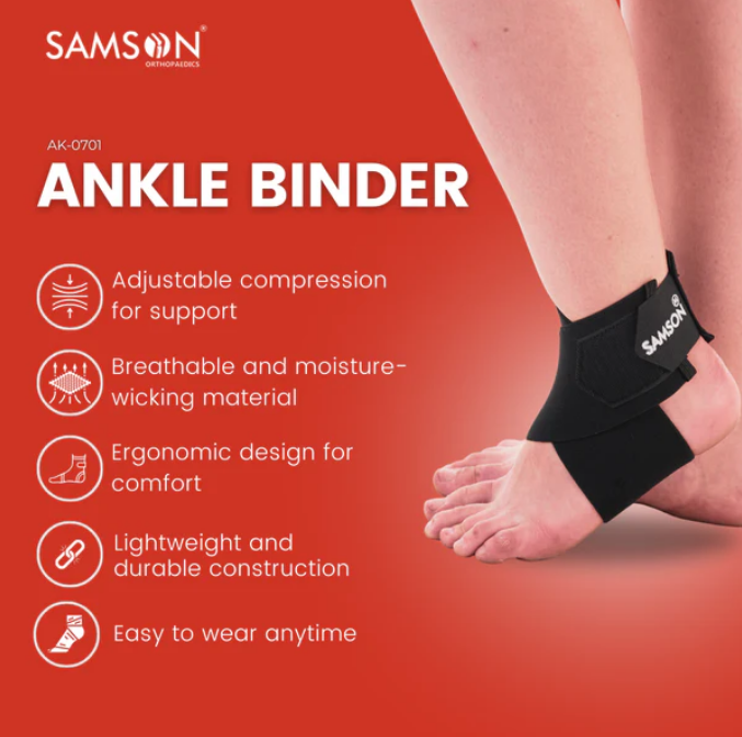 TheĀ Ankle BinderĀ fromĀ Samson OrthoticsĀ is an essential product for individuals seeking reliable support and stability for ankle injuries or post-surgery recovery. Designed to provide targeted compression and comfort, this ankle binder ensures proper support while reducing discomfort and swelling. Whether you’re managing an ankle sprain, recovering from surgery, or preventing further injury during physical activity, theĀ Ankle BinderĀ delivers the support you need.