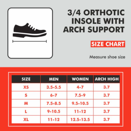 The Samson 3/4 Orthotic Insole with Arch Support is designed to provide enhanced comfort and stability for your feet. Its compact 3/4
